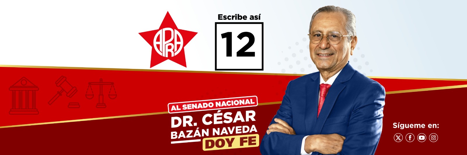 El Dr. César Bazán Naveda da un paso adelante en su trayectoria de servicio a la comunidad al postular al Senado de la República. Con propuestas claras orientadas a la reforma del sistema de justicia y un firme compromiso con la ciudadanía, su candidatura representa una apuesta por fortalecer la institucionalidad, promover la ética pública y contar con liderazgos honestos y de convicciones firmes en el Parlamento Nacional.